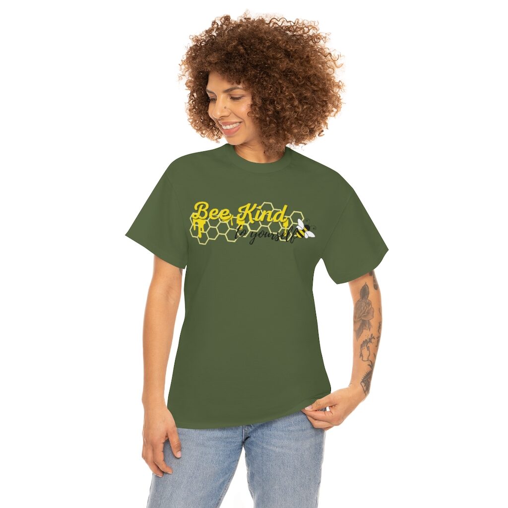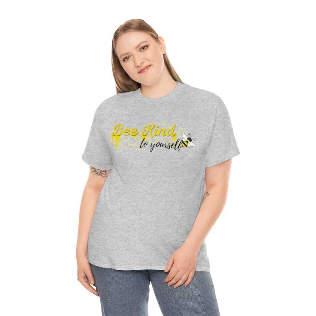 This shirt reminds us to be kind to ourselves, to say those positive things. It also features a honeycomb, honey, and a bee. Remember, when we are outward kind to ourselves and are positive, others pick up on that. They start to become positive themselves. Let’s work together to create a world where we spread positivity to others and to ourselves.